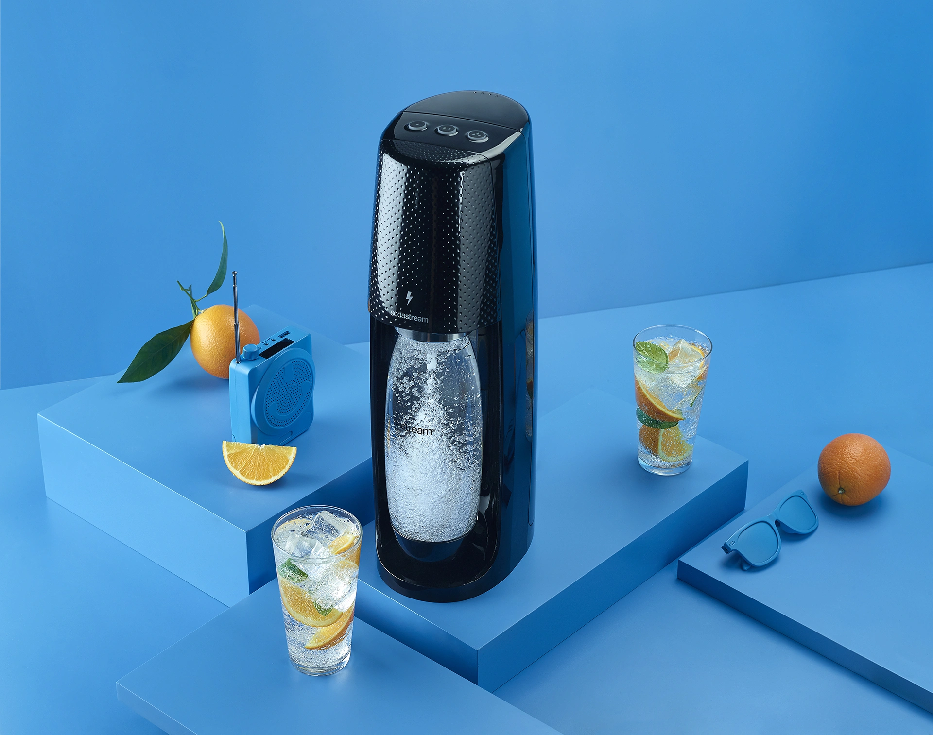 It is the bubbles in the bottles, the blues of the boxes, the shake of Shake Design the branding agency, the tempo of Amit the stylist that gathered all together for Soda Stream